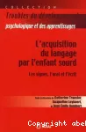 TRANSLER C. ; LEYBAERT J. ; GOMBERT J-E | Louvain-La-Neuve : De Boeck | Troubles du développement psychologique et des apprentissages | 2005Cet ouvrage regroupe les écrits de quelques uns des meilleurs spécialistes de la surdité. Les estimations quant au niveau d'éducation des sourds sont vagues. Il n'y a pas de recensement de la surdité qui permettrait de connaître le niveau de sco[...]![]()