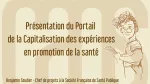 La vidéo offre une démonstration des fonctionnalités du portail CAPS, dont l'objectif est d'élaborer un dipositif de partage des connaissances dans le domaine de la santé publique.![]()